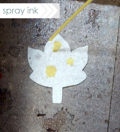 First, I used some spray ink to cover the leaves. Then, I unscrewed the top off the yellow spray ink and used the plastic part to dab on yellow ink.