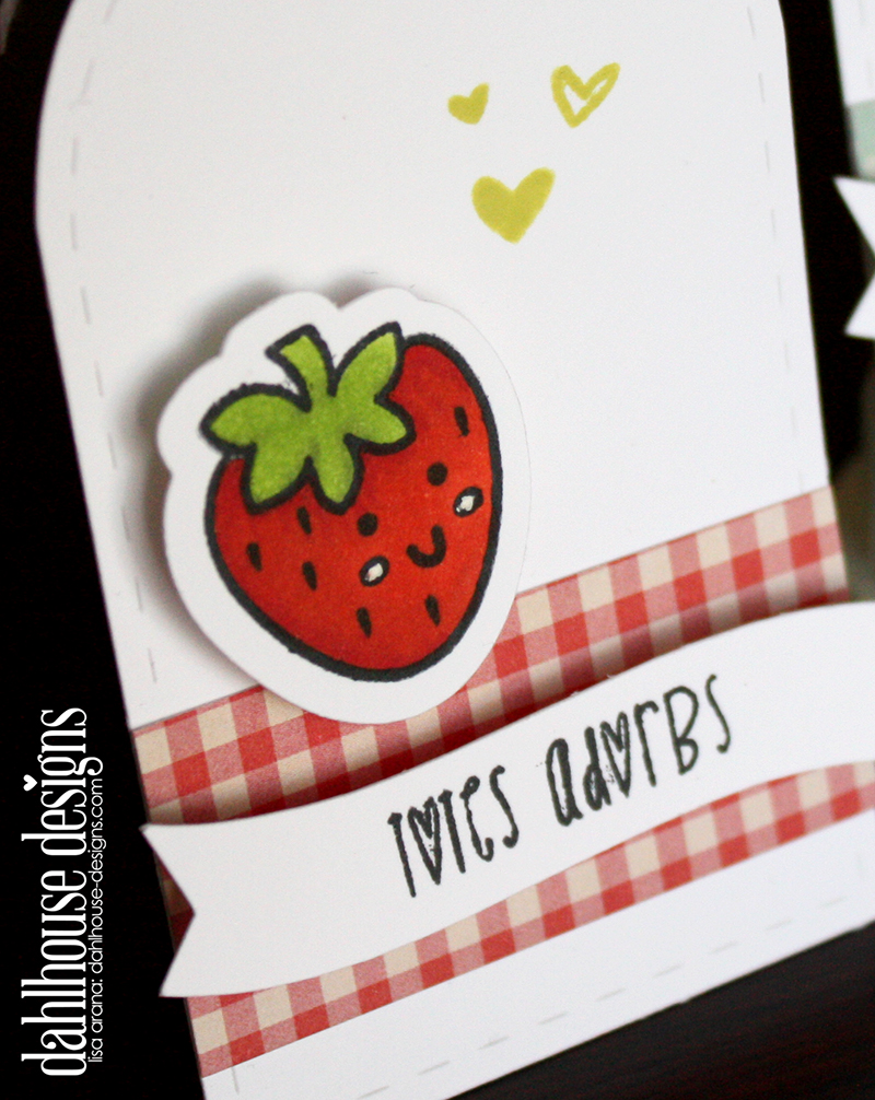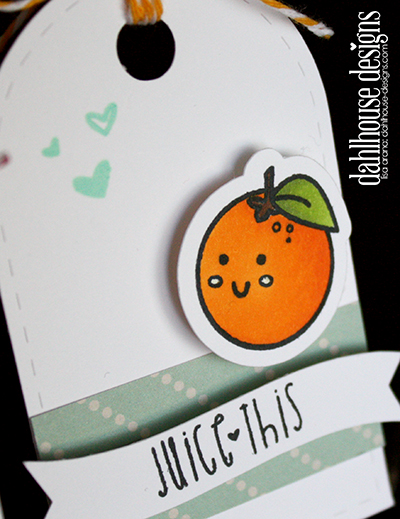 These darling little fruits made for the cutest tags. I cut the tags and fruit dies using my Cameo. I stamped the fruit and then colored them with Copics. Then, I had fun decorating the tags. Lots of great possibilities with this fun little stamp set.