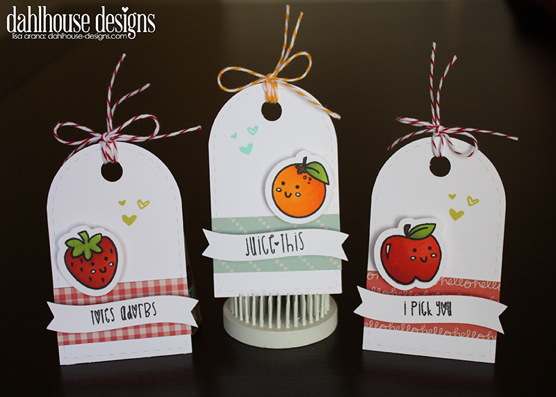 Your projects are so, so cute! I really like the tags that you made! I can’t help but smile when I see smiling fruit! 🙂