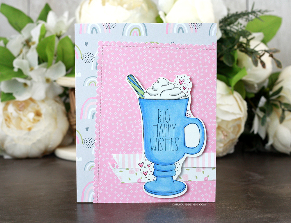 It was fun to color in the whole mug this time and the sentiment layered beautifully against the colored background.