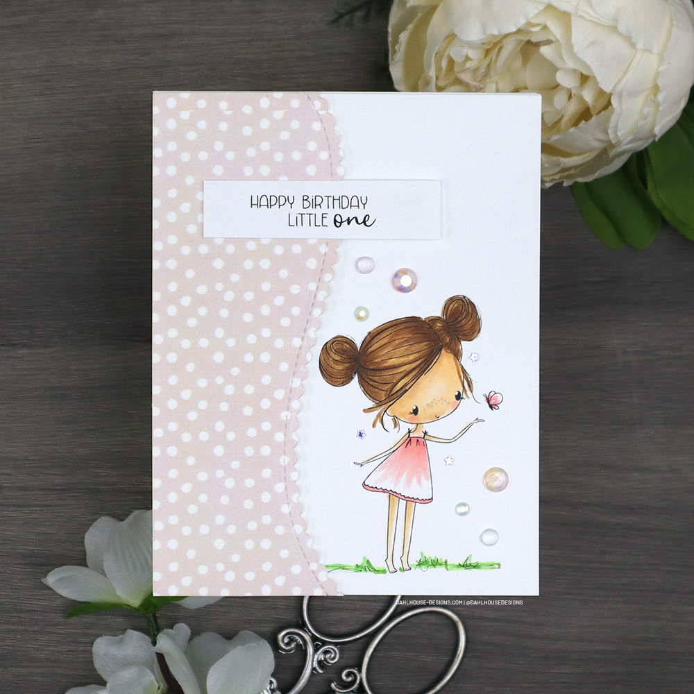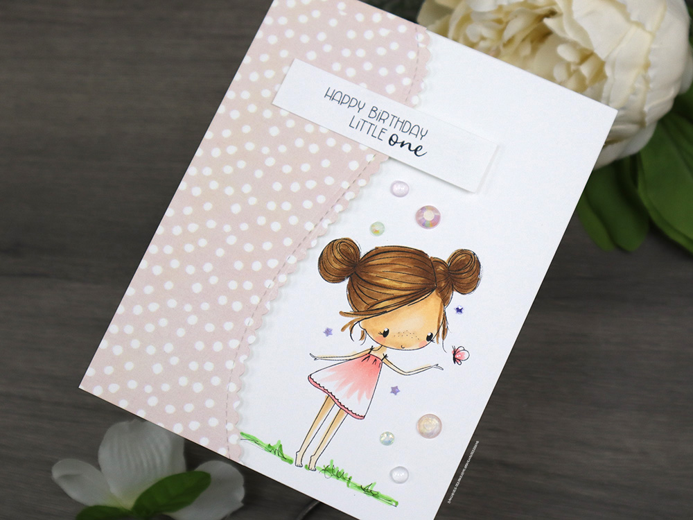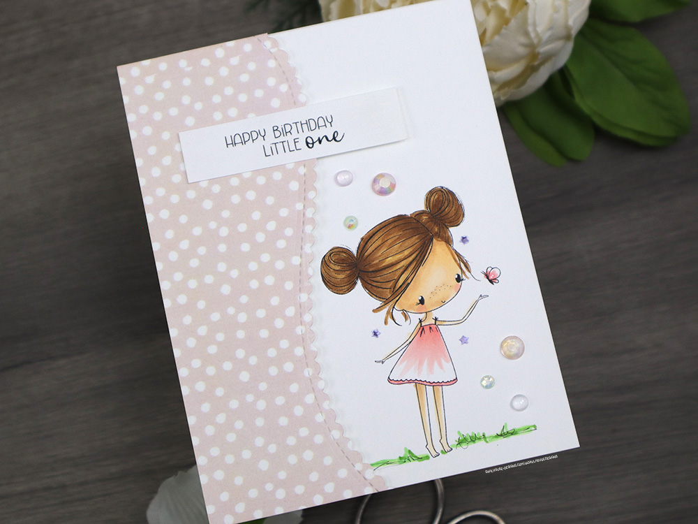 I’m all about a cute & sweet birthday card for a little girl today. I have a fun layout to share with a brand new Unity Stamp Company release.