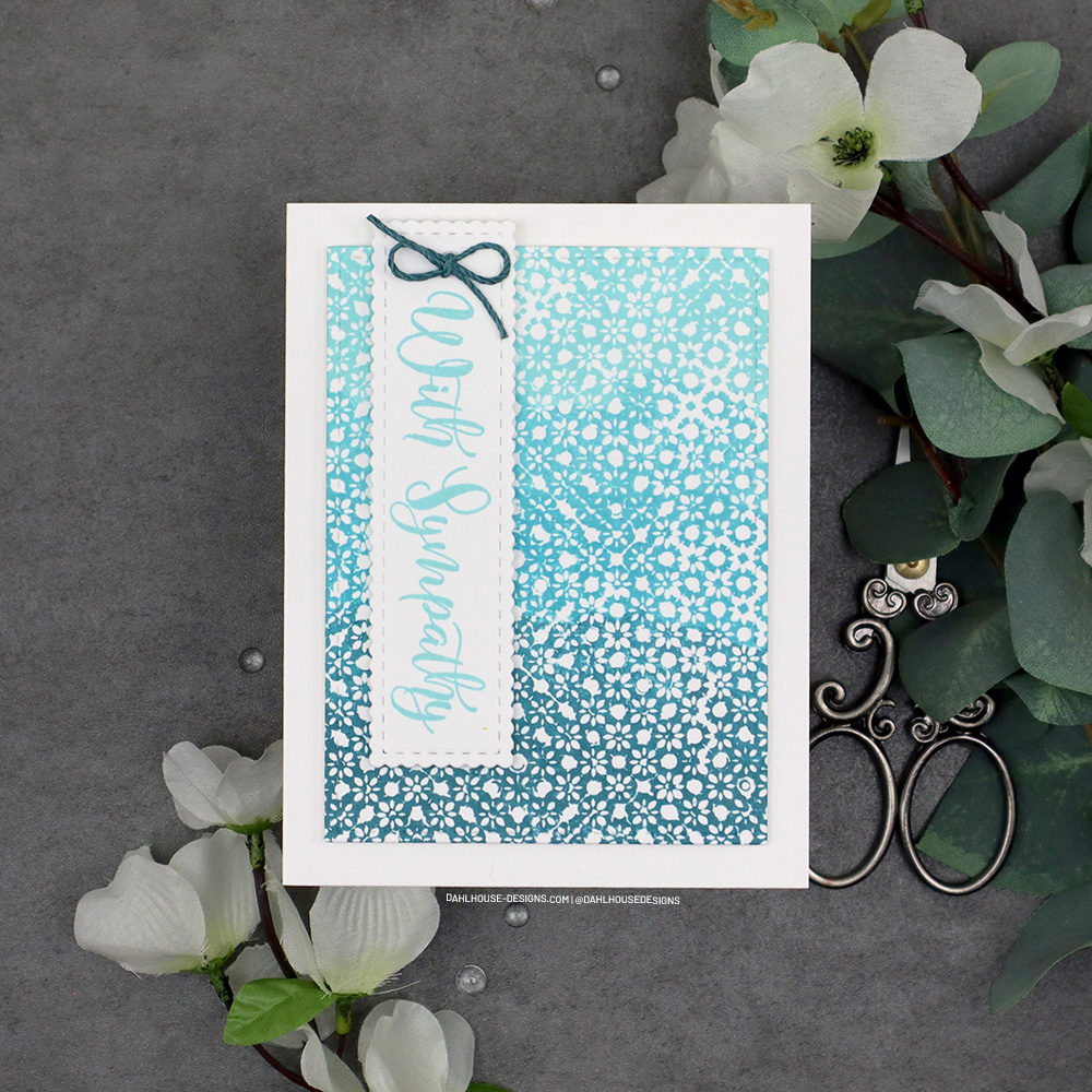 I love this beautiful Tuscan Tile design and it is the perfect backdrop or featured panel. I’ve stamped it in a trio of teals for a lovely Sympathy card.