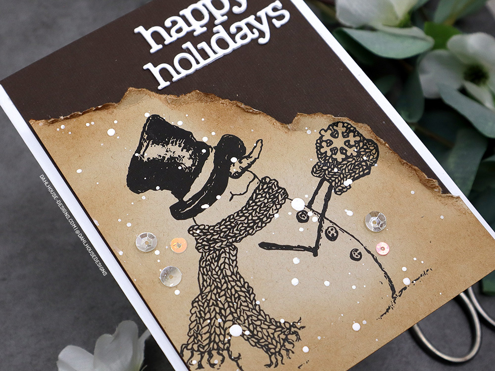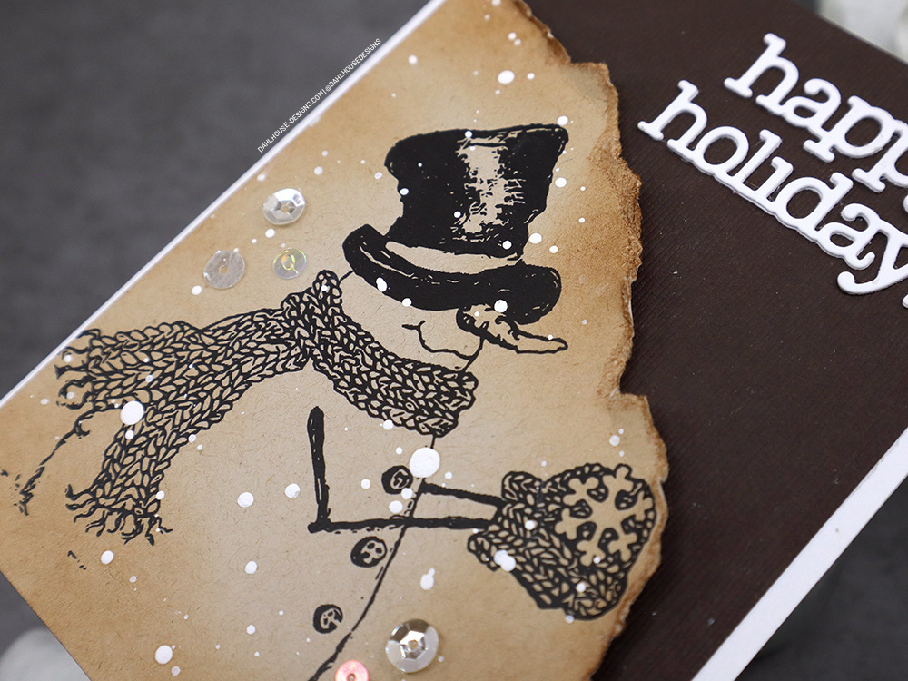 I love the cute snowman from Unity Stamp Company’s Uniquely Unity membership. He looks fantastic simply stamped in black on craft for a quick holiday card.