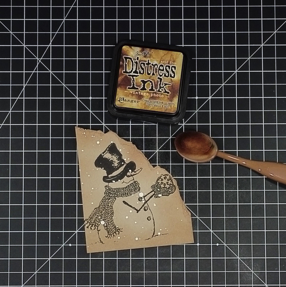 Ink blend all around and add a few white ink splatters. I like to use slightly watered down acrylic paint.