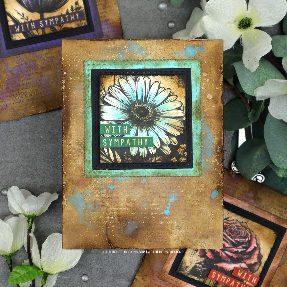 Today’s cards are all about creating a trio of Unity Stamp Company Boho Blooms sympathy cards. These lovely blooms are perfect for creating a set of cards for all occasions including sympathy. I’m getting messy with a rustic mixed media look to compliment the style of the flowers.