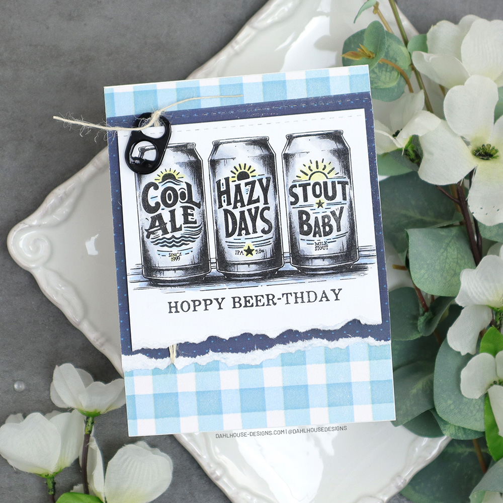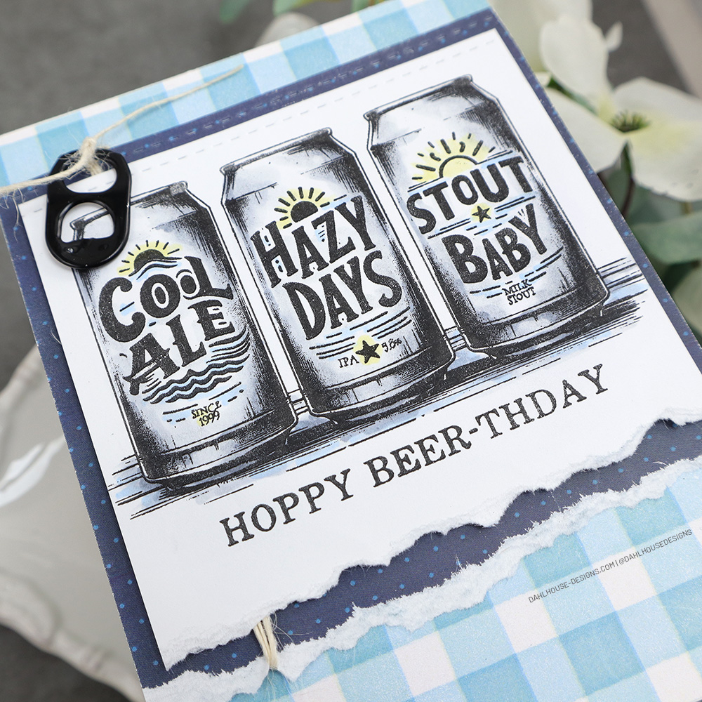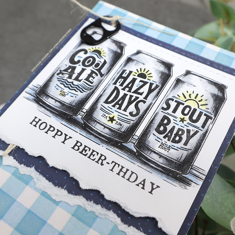 Do you have a beer lover in your life? I sure do. This stamp set has a trio of fun crafty beers they will surely love. I have a bunch of can tops that I collect to give to the Ronald McDonald House. I rummaged through them to find a fun accent for this card.