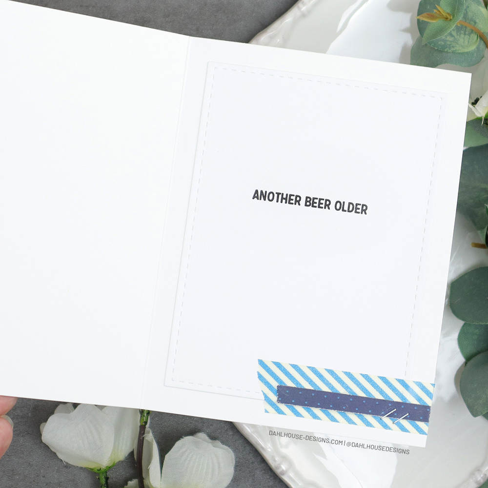 Decorate the Inside: The stamp set covers so many occasions with a mix of sayings that work wonderfully on the front or inside of the card. I stamped and die cut the beer sentiment, added some washi, and a strip of pattern paper with a few cute staples for an embellishment.