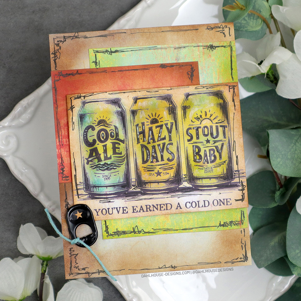 I stamped the beer cans from the Cheers Bruh Unity stamp set. I love this stamp set for any occasion for my beer loving friends. Then I used my mini brushes to color each can with colorful inks. It makes for easy coloring.