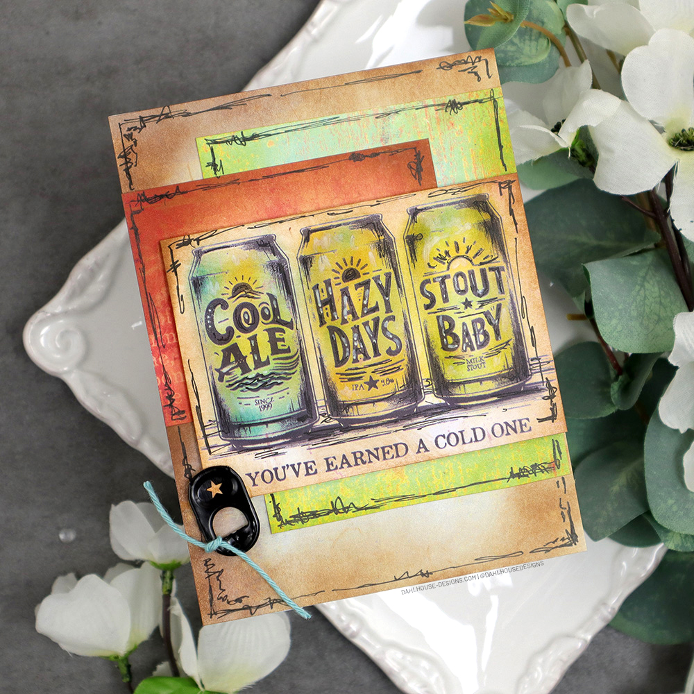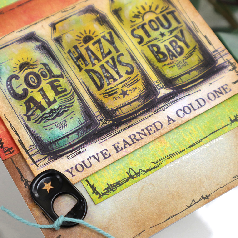 Embellishment Tip: Search around to see if you have something in your home for a fun embellishment. I had a jar full of different can tabs that worked perfectly with the beer theme.