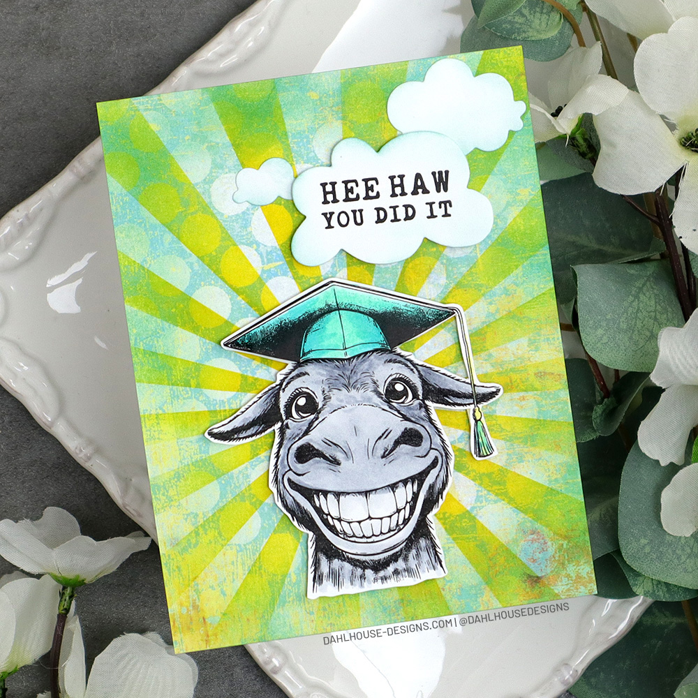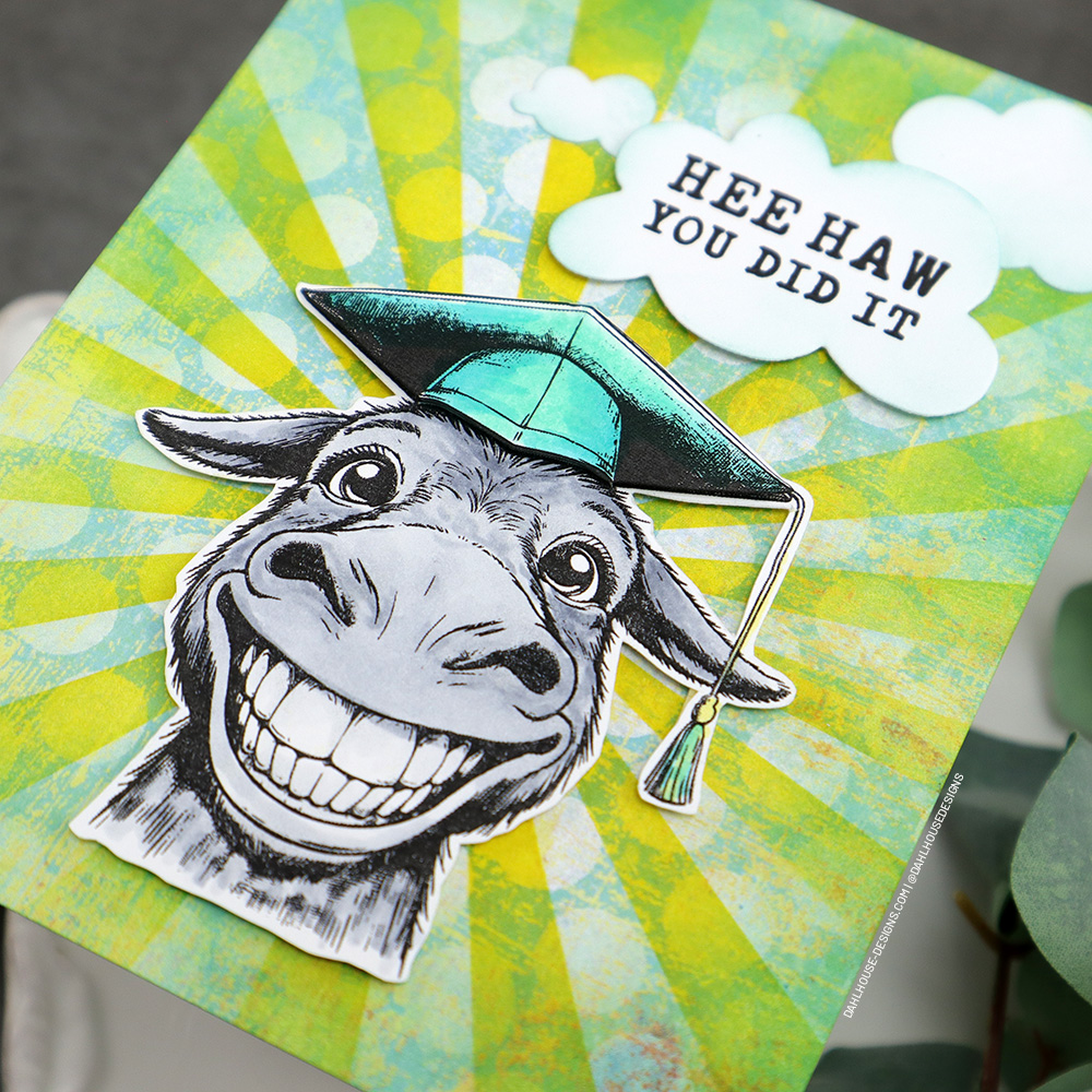 Hello! Unity Stamp Company has released a super cute stamp set that features this hilarious donkey graduate. I think you’ll love it for that grad who likes a chuckle! Plus, I’m sharing a JAM Sesh video to see how this amazing background was so easy to create.