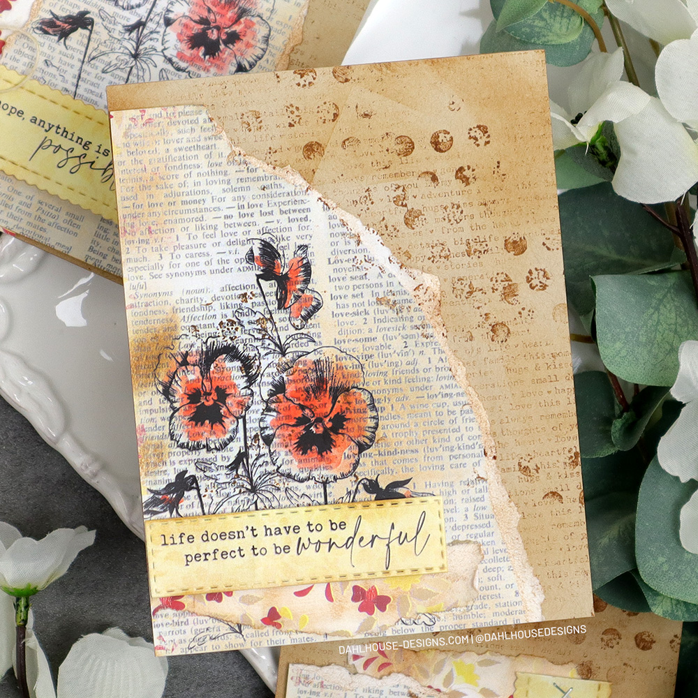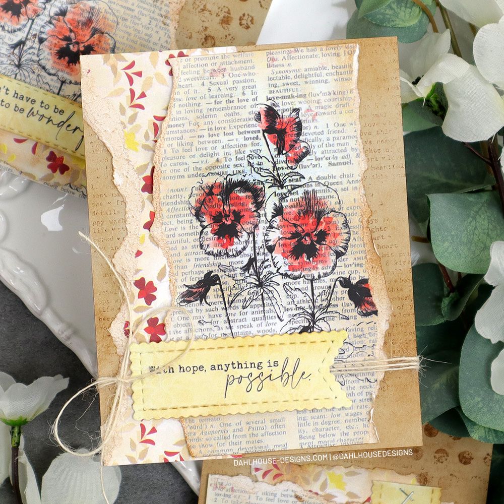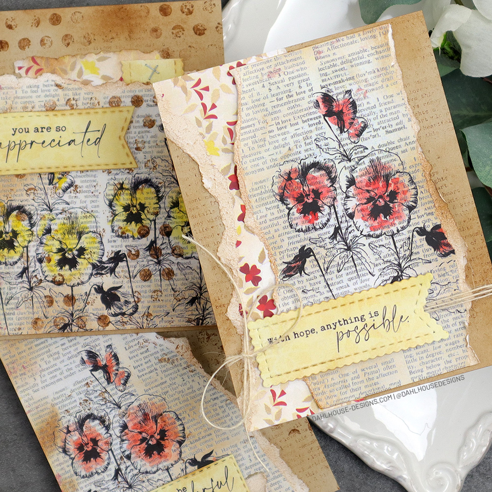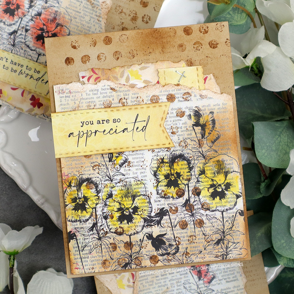 Unity Stamp Company released this beautiful pansy stamp set and pattern paper that inspired me to tear things up and see what happens.