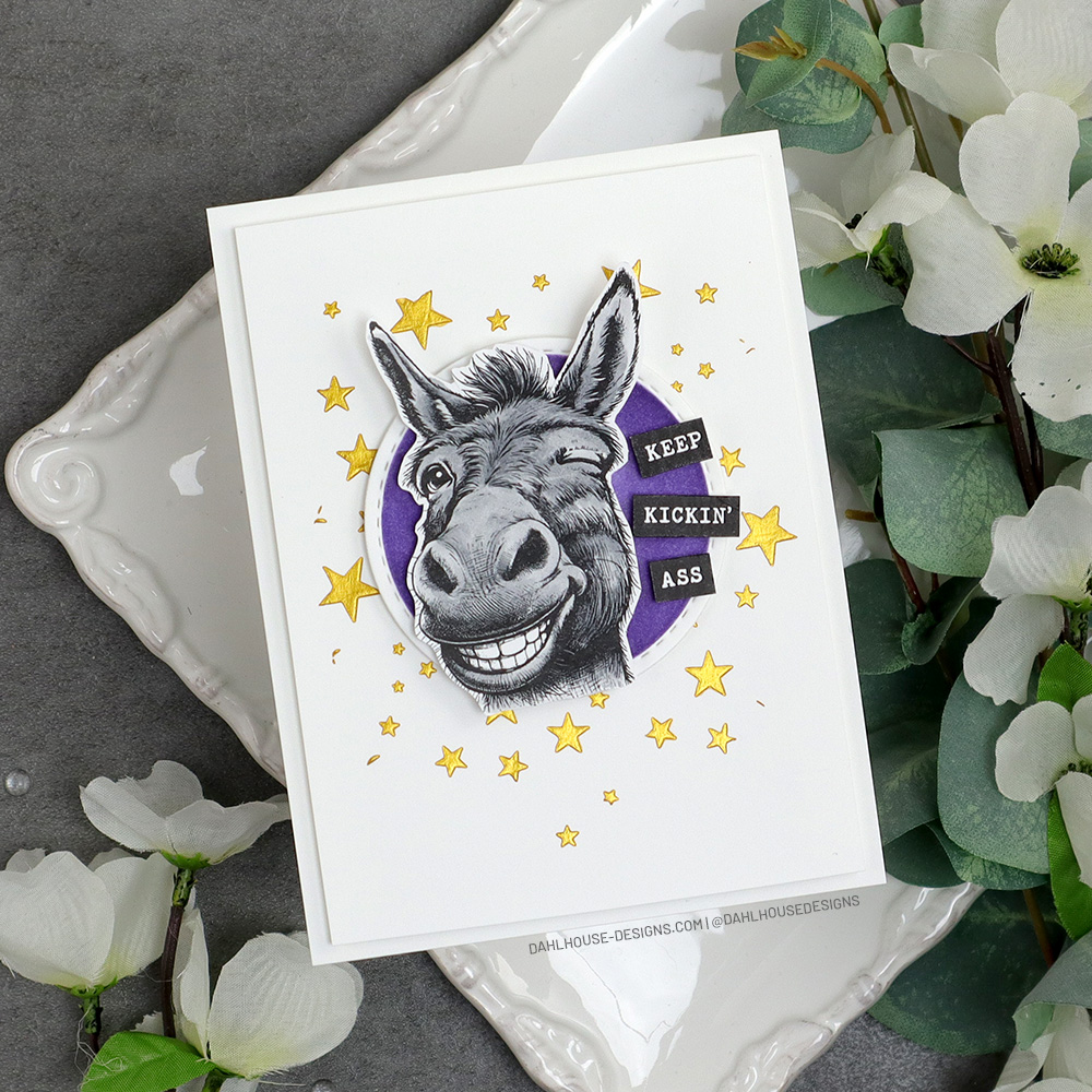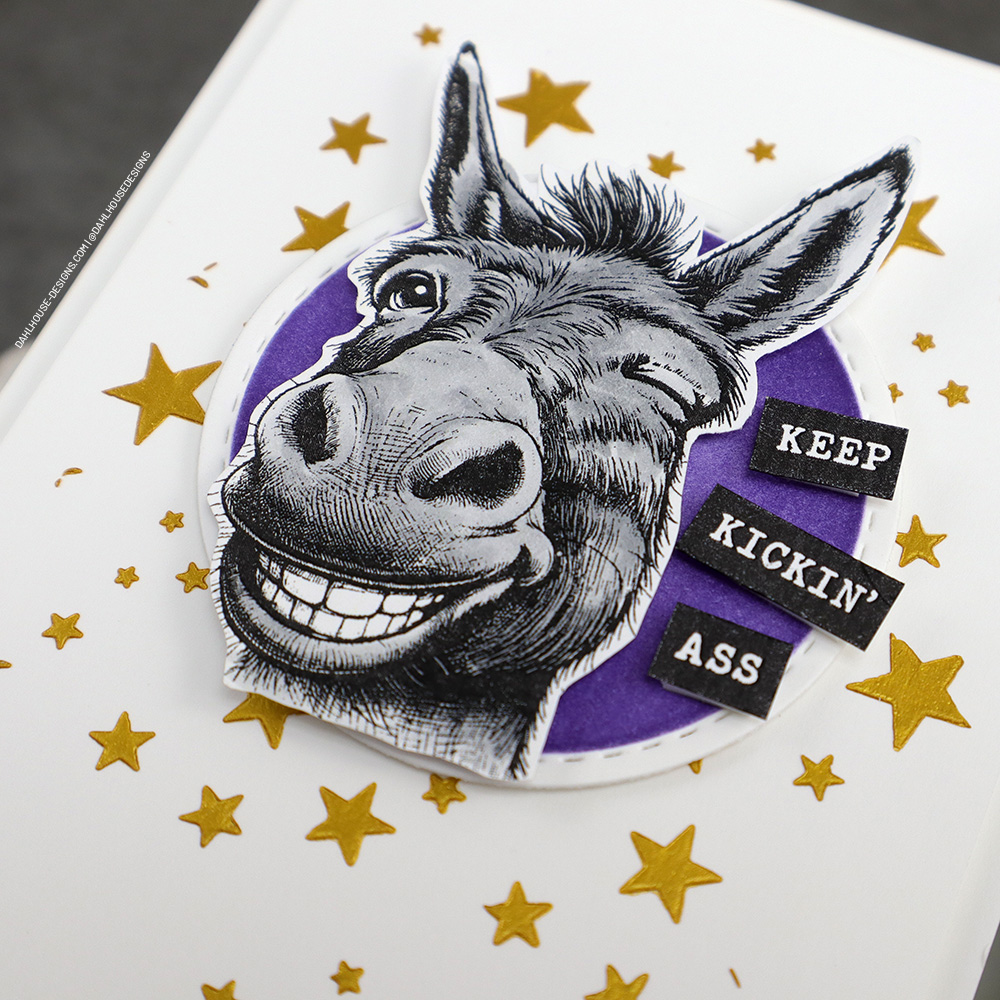 Hi there! Today’s card is all about a simple design with lots of fun. Join me for a JAM Sesh with a little Lunar Paste and a silly donkey to make one kick ass card.