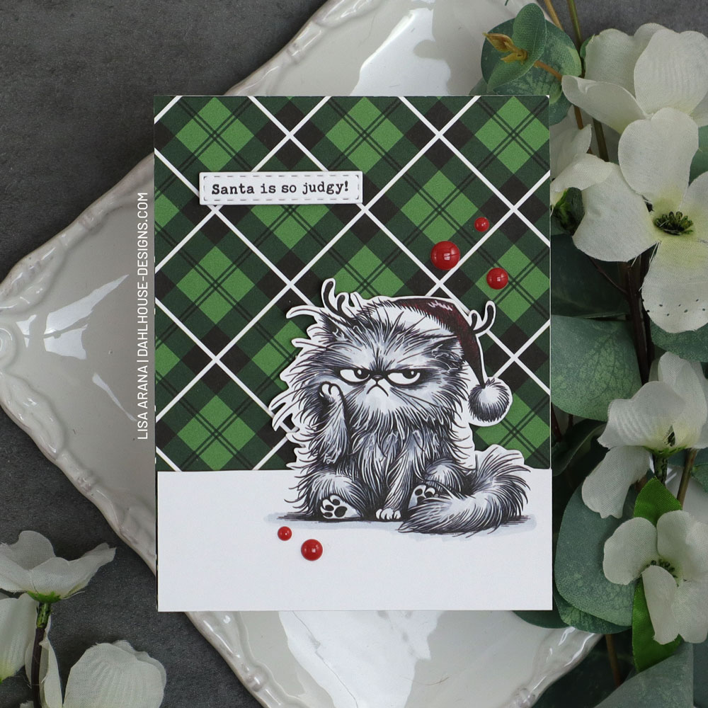 Are you feeling a little more “bah humbug” than “ho ho ho” about creating Holiday cards? Then, this card is sure to capture your mood perfectly! Featuring this delightfully grumpy kitty and a dash of snarky holiday humor, this card is a playful way to share a laugh with friends and family who appreciate a bit of sarcasm with their seasonal greetings.