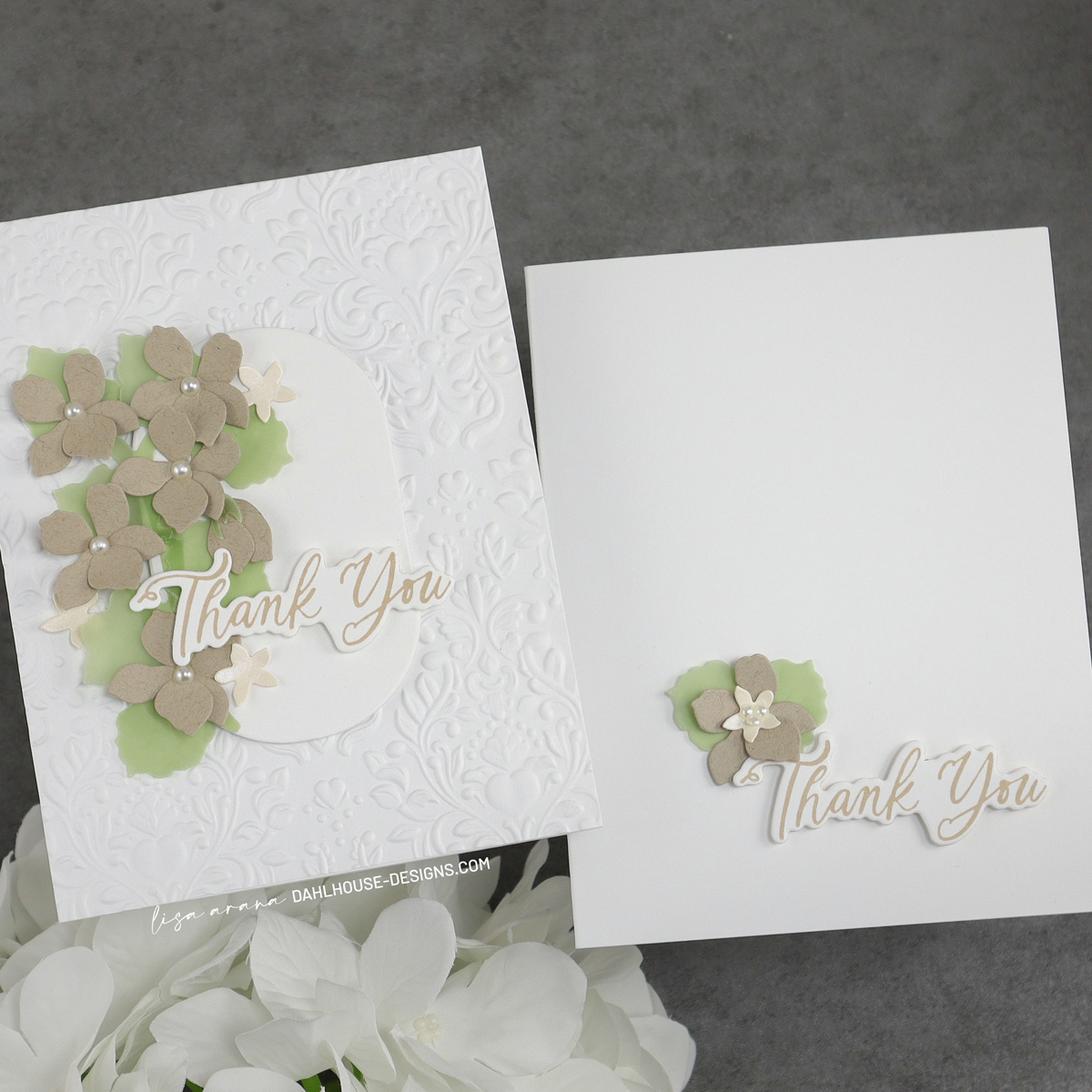 I love how these two cards show that you do not need more supplies to get more looks. One floral die set can carry you through layered designs and clean layouts with ease, making clean and simple thank you cards both versatile and fun to create.